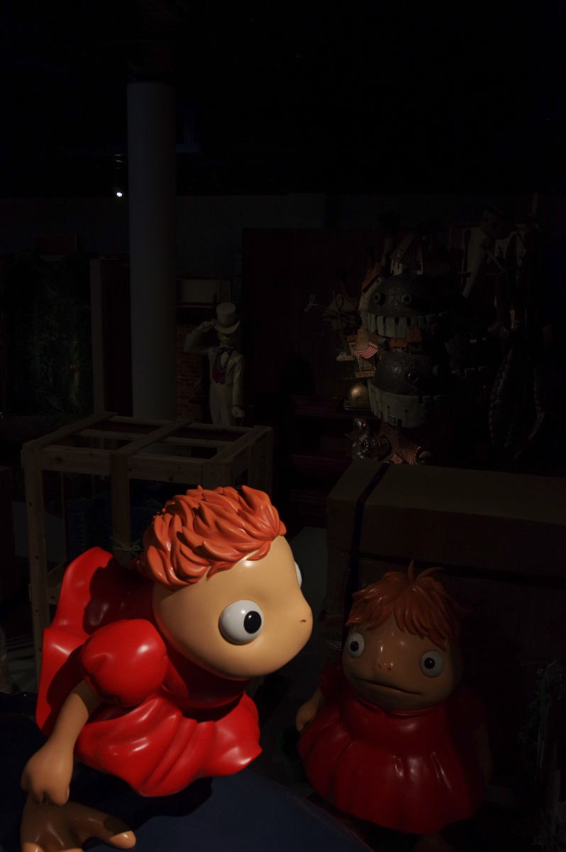 ポニョの奥にはバロンやハウルの動く城も見える。作品関係なく保管されているまさに倉庫。これをあえて展示として見せる憎さ。