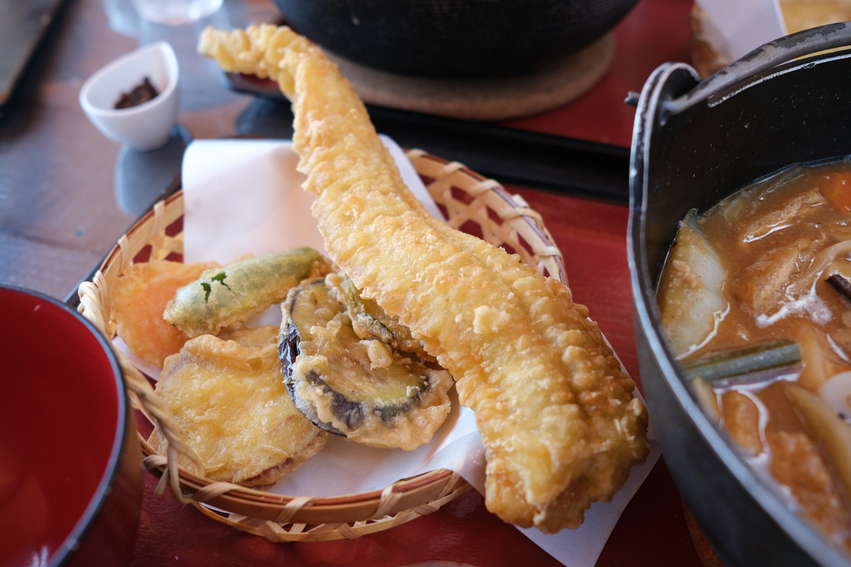 この日はアナゴの天ぷら付き野菜ほうとうを頂いた。