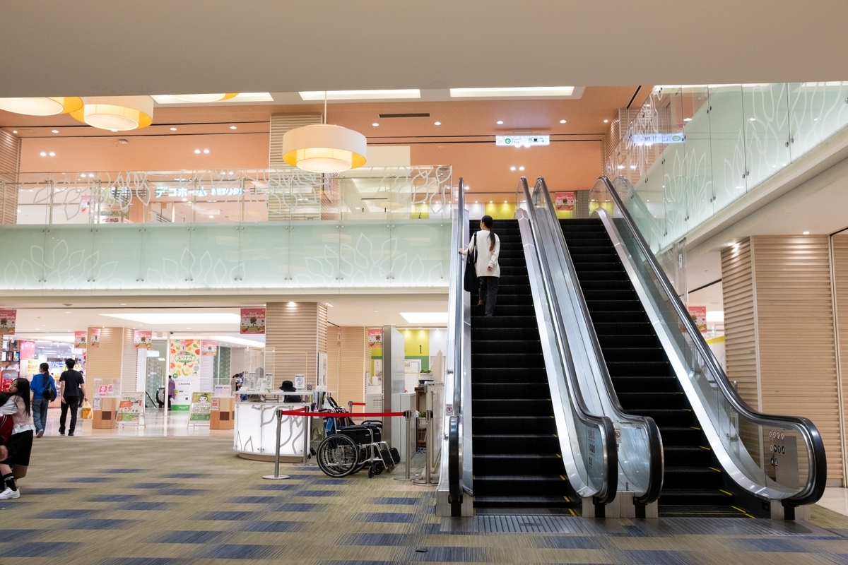 ここもほぼ変わらずだが、エレベーターが1基に変更されている。比較して思い出したのだが、ダイエー時代も上の写真と同じ2基体制だったのだ。大人が4〜5人乗ったらキツキツというレベルの広さだったと思う。